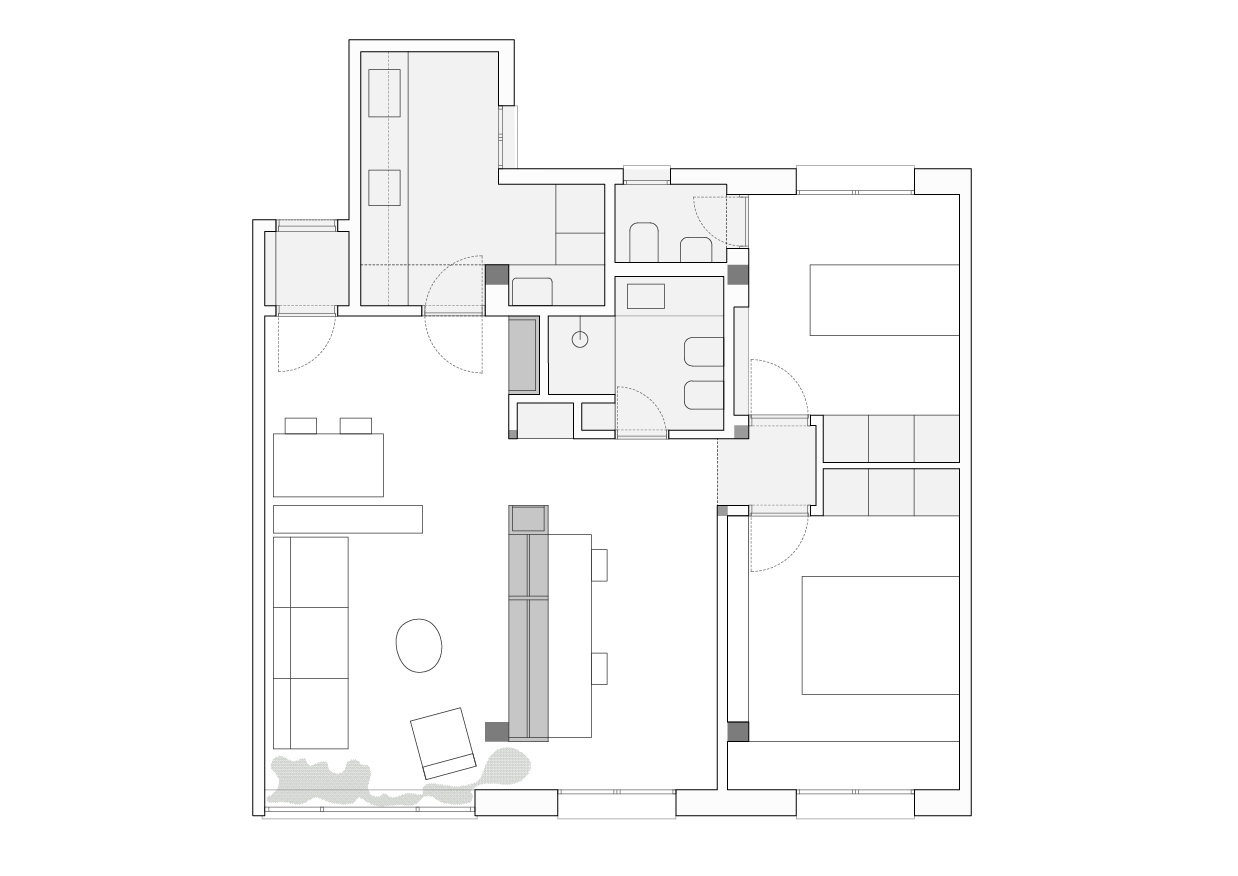 La intervención nace de una estrategia clara que potencia los espacios mediante un orden preciso, buscando la continuidad y conexión entre ellos, sin renunciar a la escala doméstica ni a la calidez propia del habitar cotidiano.